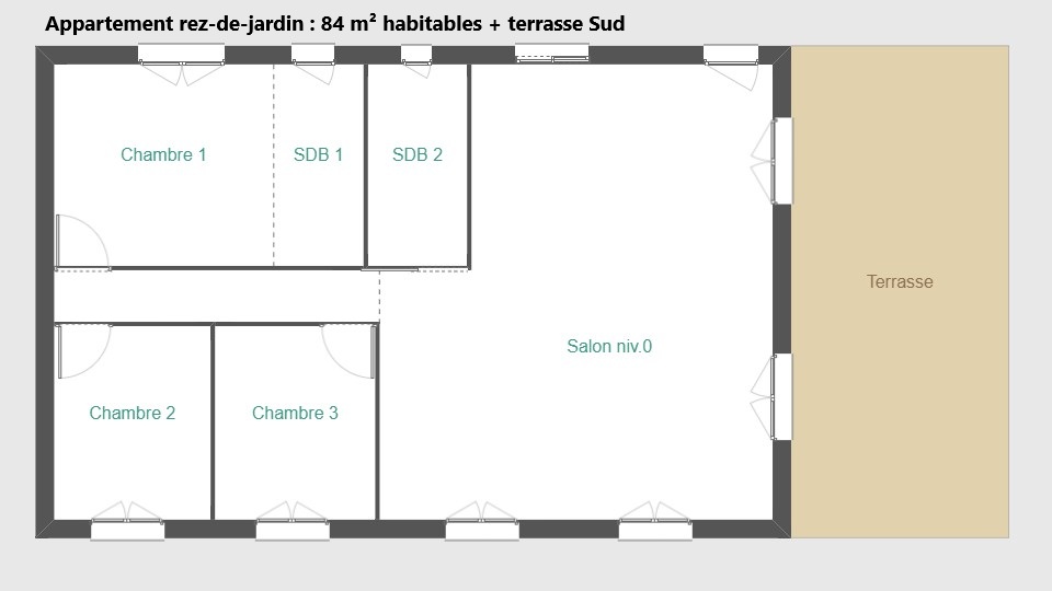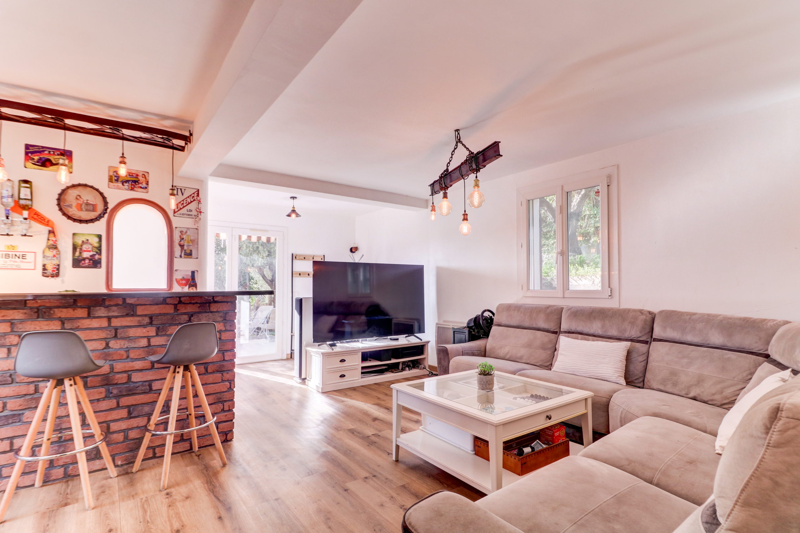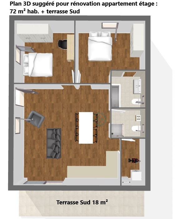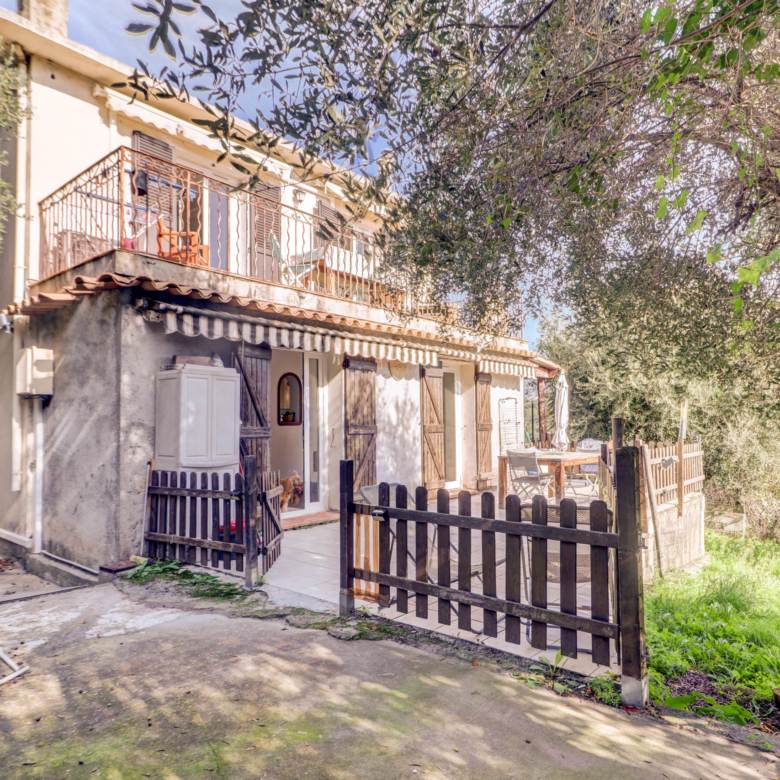 Orientée Sud, la maison se compose de deux appartements indépendants, chacun avec sa terrasse.